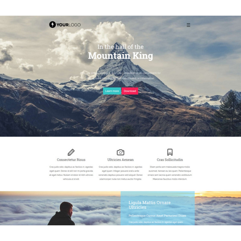 Одностраничный адаптивный шаблон Mountain King, базирующийся на bootstrap, со своим свежим и простым внешним видом очень популярен среди многих пользователей. Он включает в себя 336 векторных иконок, великолепные картинки галереи и интересное меню. Ко всему этому добавляется отличная CSS3 анимации, которая привлечет внимание посетителей вашего сайта и точно не оставит их равнодушными. Шаблон Mountain King отлично подходит для портфолио и блогов о путешествиях.