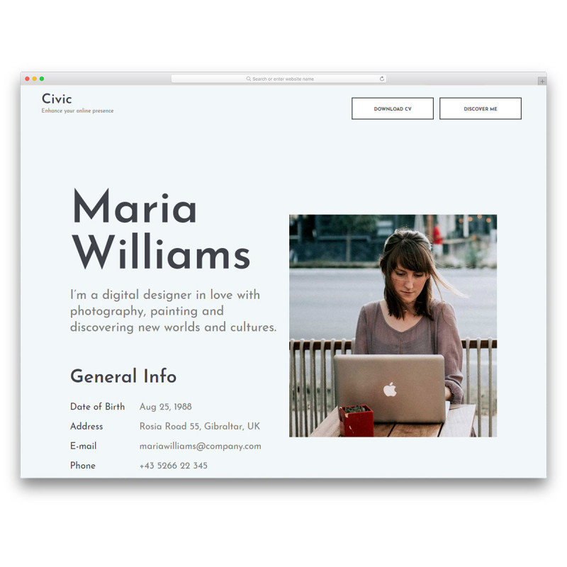 ✅ Civic шаблон персонального сайта для фотографа, художника, программиста