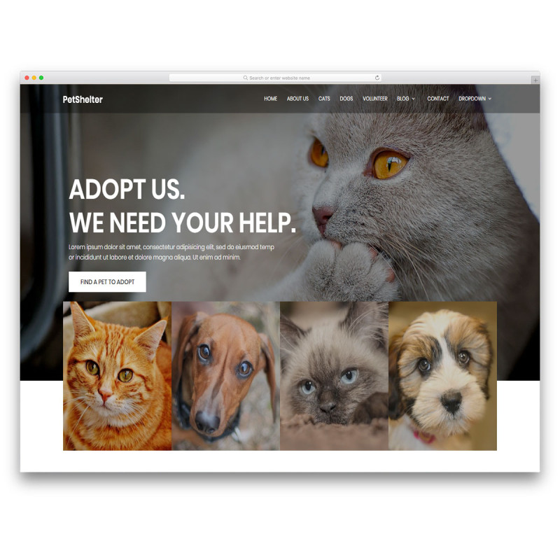 Animal Shelter - это бесплатный шаблон для сайта о диких и домашних животных с уникальными функциями и гладким веб-дизайном. Если вы ищете способ создать сайт для своей ветеринарной клиники или для приюта для животных, то «Animal Shelter» - это правильный способ сделать это. Вам даже не нужно много делать, чтобы изменить внешний вид. Помимо добавления вашей информации и контента, вы сможете превратить Animal Shelter в информативный сайт.