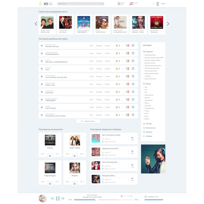 • Тематика: музыкальный портал (онлайн музыка, альбомы, артисты).