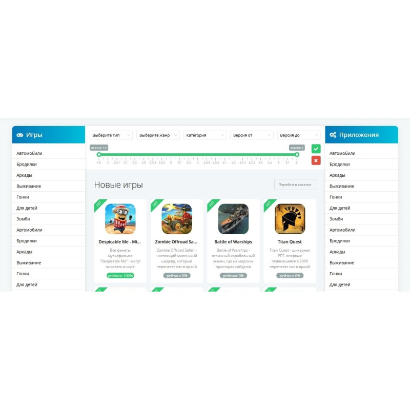Androidus Fresh - адаптивный android шаблон для DLE в три колонки. Колонки шаблона удобно разделены на игры и приложения. Шаблон выполнен в бело-синих цветах с красивыми градиентами. Помимо меню в правой и левой колонке, имеется верхнее выпадающее меню. Всё меню на мобильных устройствах прячется под одну кнопку. Также встроено готовое оформление под модуль фильтра. Предусмотрена и возможность вывода сео-описания сайта как на главной, так и в категориях. Для оценки приложений можно использовать рейтинг 5 звёзд, либо рейтинг с раздельными лайками/дизлайками. Данный android шаблон для DLE полностью адаптивен и прекрасно отображается на различных мобильных устройствах.