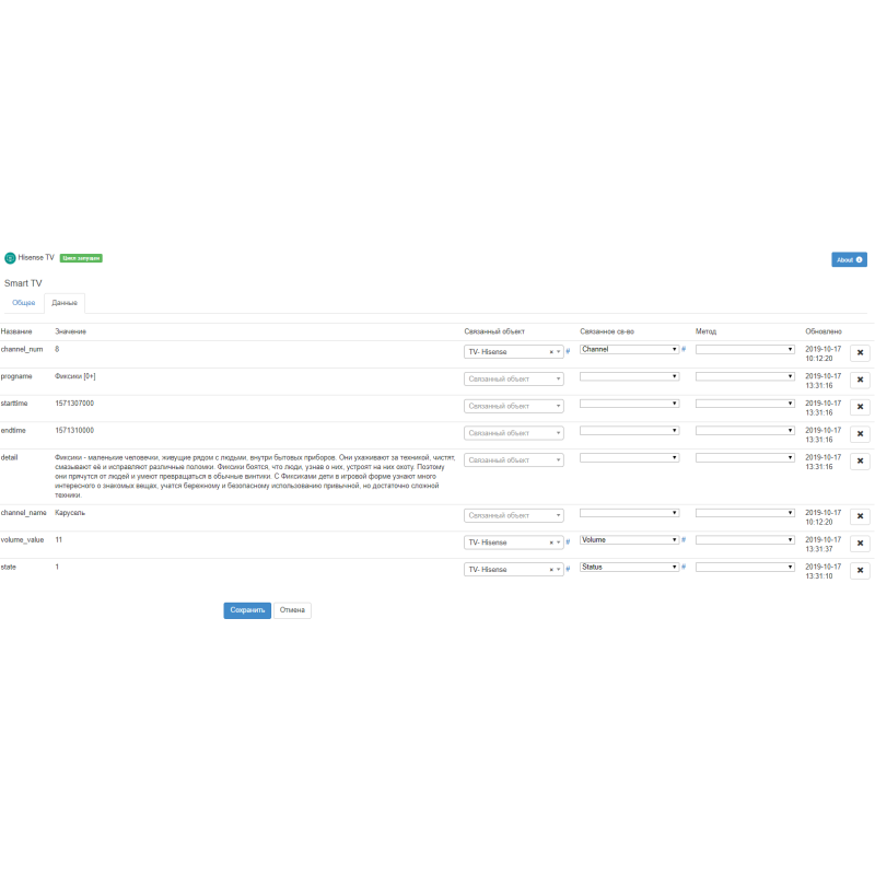 Управление Hisense Smart TV (вкл/выкл, переключение каналов, управление громкостью, получение доп. информации)