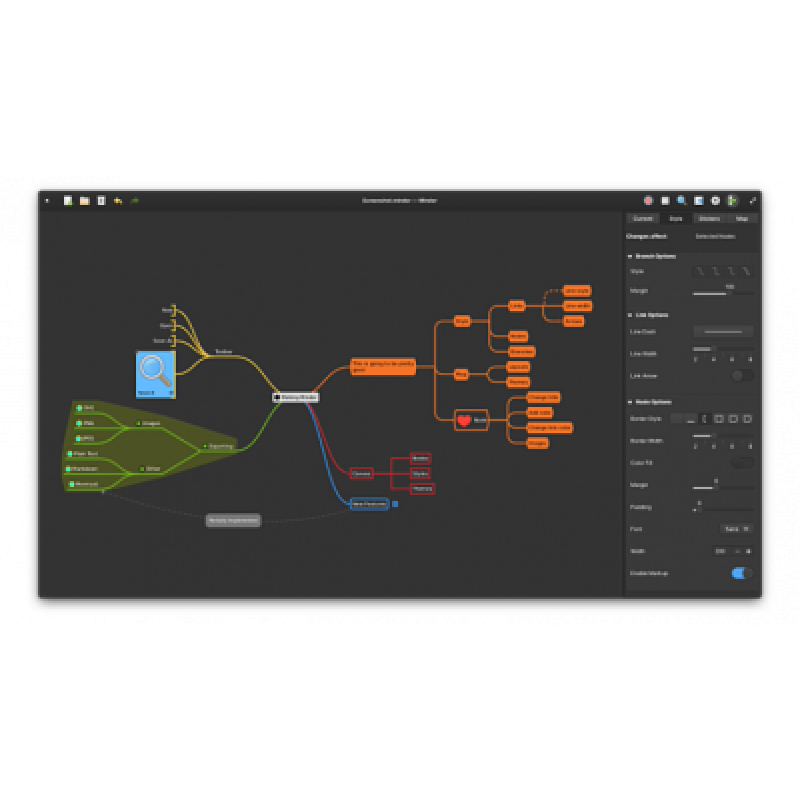 Программа позволяет создавать графические карты мыслей в виде дерева с множеством узлов.