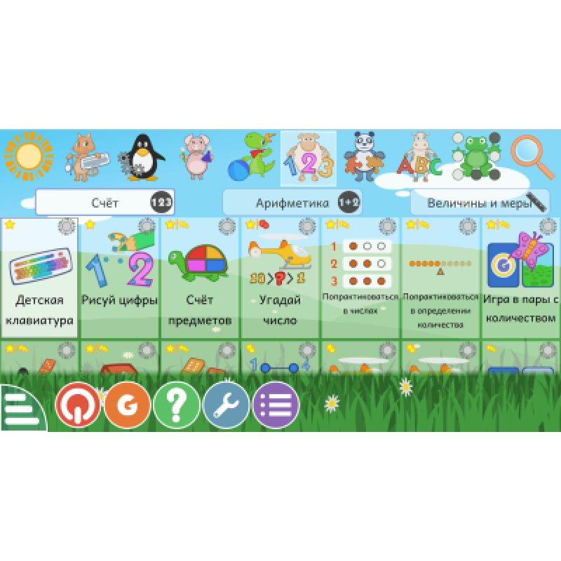 GCompris включает в себя более 180 различных обучающих игр, активностей, упражнений для развития детей.