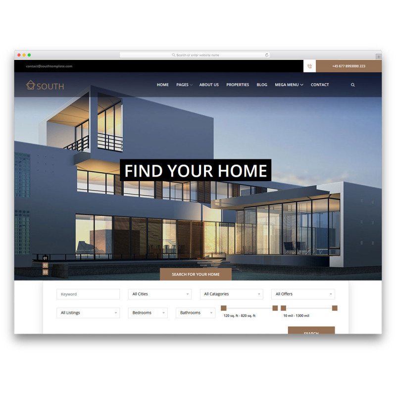 South - это идеальный бесплатный шаблон для сайта HTML, который вам нет необходимости рекламировать и продавать, вы сами захотите скачать тему немедленно. Являетесь ли вы агентом или агентством недвижимости, South - отличная возможность для вас привлечь еще больше клиентов и увидеть успех, о котором вы всегда мечтали. South может быть инструментом, который вам стоит ровным счетом ничего. Вам необходимо добавить лишь личную информацию, установить шаблон на выбранную CMS и вложить свои силы в создание контента и фотографий объектов недвижимости.