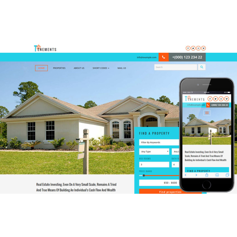 Tenements является шаблоном для сайта на тему недвижимости, он может стать лучшим решением для агентства недвижимости или ипотечной компании, расширит возможности вашего бизнеса и привлечет новых, молодых и современных клиентов. Шаблон еще и хорошо подойдет для любого сайта агента по продаже недвижимости и собственности, для строительной компании, дизайнера интерьеров, для брокерской контры, жилых и коммерческих застройщиков, шаблон можно использовать для предоставления информации о апартаментах или вилле в аренду и для многого другого.