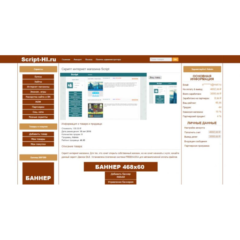 Скрипт магазина Script-HI имеет уникальный движок, всё на полном автомате.