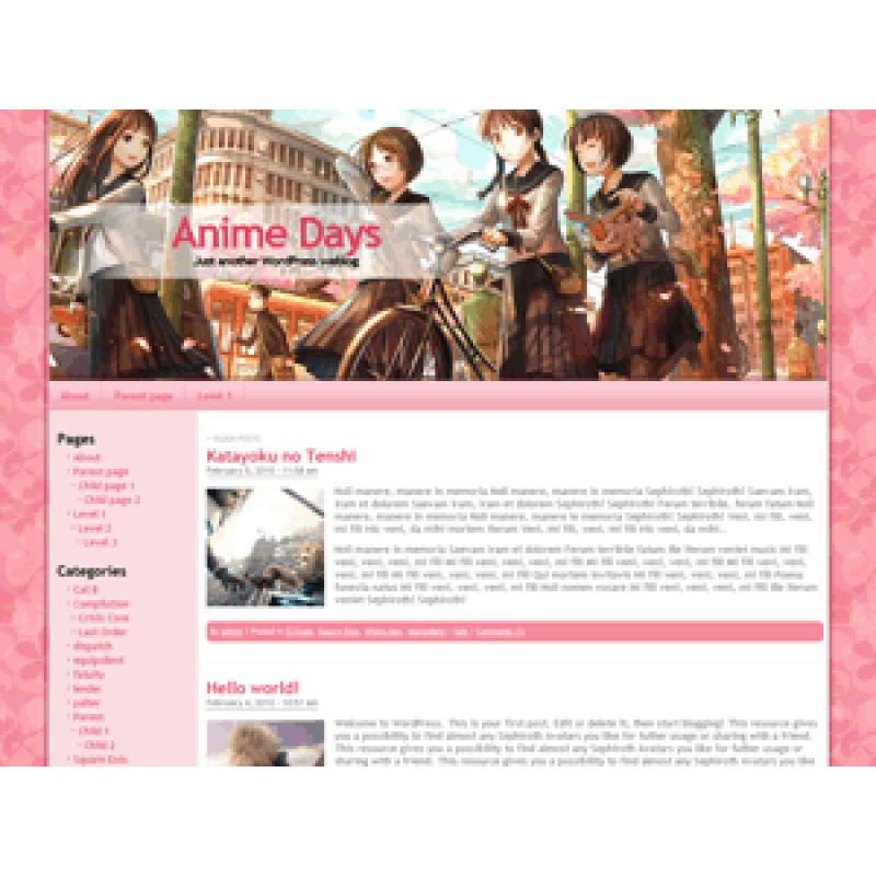 Что будет если соединить тему для WordPress с левым расположением меню, пастельные тона и аниме? Правильно, получится тема Anime Days. Думаем, не нужно уточнять, для каких сайтов она была сделана. Для удобства пользователя, эта тема не нуждается в каких-либо дополнительных настройках после установки.