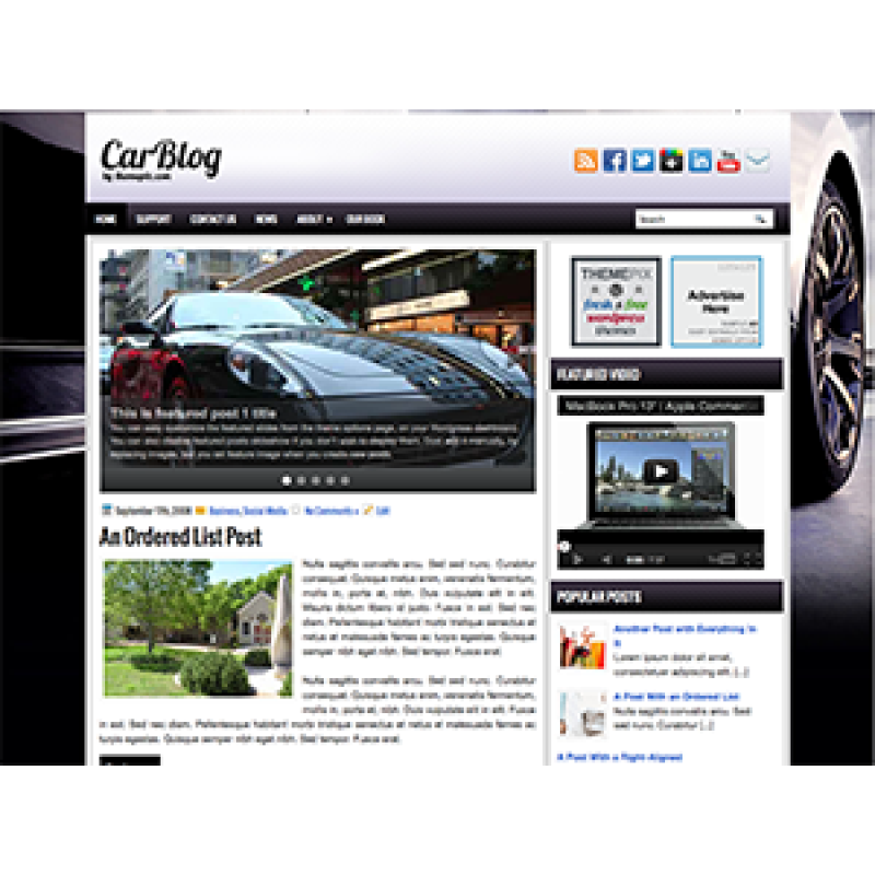 Тема для сайта автомобильной тематики, в шаблоне есть встроенный слайдер, на заднем фоне изображена машина.